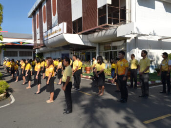 ผู้บริหาร ข้าราชการและบุคลากรทางการศึกษา สพม. ศรีสะเกษ ยโสธร ร่วมกิจกรรมเขตสุจริตเข้าแถวเคารพธงชาติ