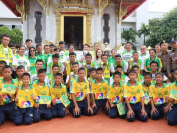 พิธีสักการะศาลหลักเมืองจังหวัดศรีสะเกษ เนื่องในโอกาสโรงเรียนกันทรารมณ์ คว้าแชมป์การแข่งขันฟุตบอลนักเรียน 7 คน