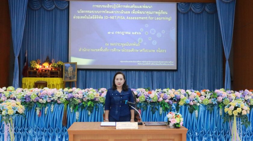 วันที่ 7 กรกฎาคม 2566 ดร.รัตติกร ทองเนตร ผู้อำนวยการสำนักงานเขตพื้นที่การศึกษามัธยมศึกษาศรีสะเกษ ยโสธร เป็นประธานเปิดการอบรมเชิงปฏิบัติการส่งเสริมและพัฒนานวัตกรรมระบบการวัดและประเมินผล เพื่อพัฒนาคุณภาพผู้เรียนด้วยเทคโนโลยีดิจิทัล (O-NET, PISA, Assessment for Learning) ณ หอประชุมนันทพันธ์ สำนักงานเขตพื้นที่การศึกษามัธยมศึกษาศรีสะเกษ ยโสธร อำเภอเมืองศรีสะเกษ จังหวัดศรีสะเกษ