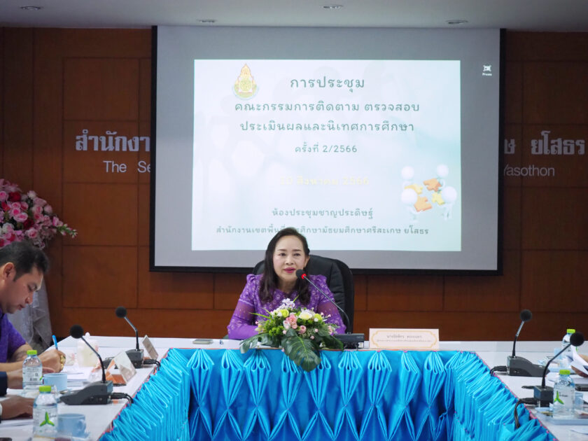 วันที่ 10 สิงหาคม 2566 ดร.รัตติกร ทองเนตร ผู้อำนวยการสำนักงานเขตพื้นที่การศึกษามัธยมศึกษาศรีสะเกษ ยโสธร การเป็นประธาน การประชุมคณะกรรมการติดตาม ตรวจสอบ ประเมินผลและนิเทศการศึกษา ครั้งที่ 2/2566 ณ ห้องประชุมชาญประดิษฐ์ สำนักงานเขตพื้นที่การศึกษามัธยมศึกษาศรีสะเกษ ยโสธร อำเภอเมืองศรีสะเกษ จังหวัดศรีสะเกษ เพื่อพิจารณาเกี่ยวกับการดำเนินการจัดทำเครื่องมือกำกับ ติดตาม และประเมินผลการจัดการศึกษา ปีการศึกษา 2566 ซึ่งสำนักงานเขตพื้นที่การศึกษามัธยมศึกษาศรีสะเกษ ยโสธร ได้ขับเคลื่อนนโยบาย และจุดเน้นสำนักงานคณะกรรมการการศึกษาขั้นพื้นฐาน ใน 4 ด้าน ประกอบด้วย ด้านความปลอดภัย ด้านโอกาส ด้านประสิทธิภาพ และด้านคุณภาพ จุดเน้นสำนักงานเขตพื้นที่การศึกษามัธยมศึกษาศรีสะเกษ ยโสธร ภายใต้แนวคิด “การบริหารจัดการ และการจัดการเรียนรู้บนฐานนวัตกรรม” เพื่อให้เกิดคุณภาพ 5 ด้าน ได้แก่ สำนักงานคุณภาพ สถานศึกษาคุณภาพ บุคลากรคุณภาพ ห้องเรียนคุณภาพ และผู้เรียนคุณภาพ