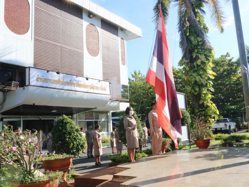 วันที่ 6 พฤศจิกายน 2566 ดร.รัตติกร ทองเนตร ผู้อำนวยการสำนักงานเขตพื้นที่การศึกษามัธยมศึกษาศรีสะเกษ ยโสธร มอบหมายให้ พันจ่าตรี ดร.พิสิฐ รักพรม นายชิราวุฒิ สองสี นางแสงเดือน เฉื่อยฉ่ำ รองผู้อำนวยการสำนักงานเขตพื้นที่การศึกษามัธยมศึกษาศรีสะเกษ ยโสธร พร้อมด้วยข้าราชการและบุคลากรสำนักงานเขตพื้นที่การศึกษามัธยมศึกษาศรีสะเกษ ยโสธร นำโดย ร่วมกิจกรรมเขตสุจริตเข้าแถวเคารพธงชาติ สวดมนต์ไหว้พระ กล่าวคำปฏิญญาเขตสุจริต โดยพร้อมเพรียงกัน ณ สำนักงานเขตพื้นที่การศึกษามัธยมศึกษาศรีสะเกษ ยโสธร อำเภอเมืองศรีสะเกษ จังหวัดศรีสะเกษ รายละเอียดเพิ่มเติม