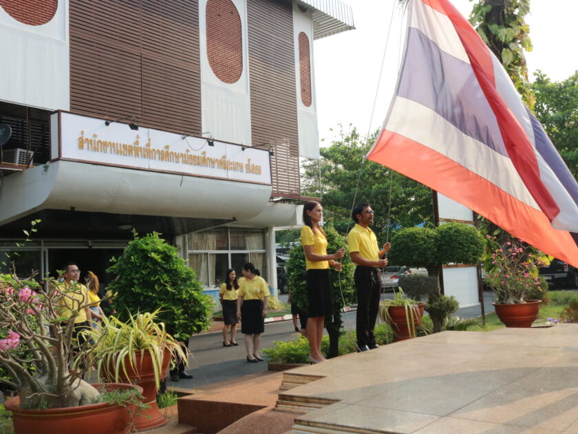 วันที่ 11 มีนาคม 2567 นางรัตติกร ทองเนตร ผู้อำนวยการสำนักงานเขตพื้นที่การศึกษามัธยมศึกษาศรีสะเกษ ยโสธร มอบหมายให้ ผู้บริหาร ข้าราชการและบุคลากรทางการศึกษาสำนักงานเขตพื้นที่การศึกษามัธยมศึกษาศรีสะเกษ ยโสธร นำโดย พันจ่าตรี พิสิฐ รักพรม รองผู้อำนวยการสำนักงานเขตพื้นที่การศึกษามัธยมศึกษาศรีสะเกษ ยโสธร นางแสงเดือน เฉื่อยฉ่ำ รองผู้อำนวยการสำนักงานเขตพื้นที่การศึกษามัธยมศึกษาศรีสะเกษ ยโสธร ร่วมกิจกรรมเขตสุจริตเข้าแถวเคารพธงชาติ สวดมนต์ไหว้พระ กล่าวคำปฏิญญาเขตสุจริต โดยพร้อมเพรียงกัน ณ สำนักงานเขตพื้นที่การศึกษามัธยมศึกษาศรีสะเกษ ยโสธร อำเภอเมืองศรีสะเกษ จังหวัดศรีสะเกษ รายละเอียดเพิ่มเติม