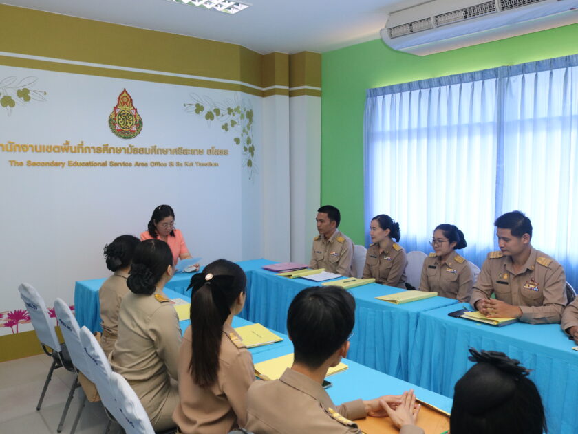 วันที่ 28 มีนาคม 2567 นางรัตติกร ทองเนตร ผู้อำนวยการสำนักงานเขตพื้นที่การศึกษามัธยมศึกษาศรีสะเกษ ยโสธร มอบหมายให้ นางแสงเดือน เฉื่อยฉ่ำ รองผู้อำนวยการสำนักงานเขตพื้นที่การศึกษามัธยมศึกษาศรีสะเกษ ยโสธร กล่าวต้อนรับ พร้อมปฐมนิเทศและมอบแนวนโยบายการปฏิบัติงานในการรายงานตัวเพื่อบรรจุและแต่งตั้งเข้ารับราชการเป็นข้าราชการครูและบุคลากรทางการศึกษา ตำแหน่งครูผู้ช่วย สังกัดสำนักงานคณะกรรมการการศึกษาขั้นพื้นฐาน ปี พ.ศ. 2564 ตามคณะกรรมการการศึกษาธิการจังหวัดอำนาจเจริญ ลงวันที่ 24 มีนาคม 2565 จำนวน 1 ราย และผู้สอบแข่งขันได้ฯ ตำแหน่งครูผู้ช่วย สังกัดสำนักงานคณะกรรมการการศึกษาขั้นพื้นฐาน ปี พ.ศ. 2566 ประกาศบัญชี อ.ก.ค.ศ. เขตพื้นที่การศึกษามัธยมศึกษาสุรินทร์ ลงวันที่ 19 กรกฎาคม 2566 จำนวน 10 ราย ณ ห้องประชุมกลุ่มบริหารงานบุคคล สำนักงานเขตพื้นที่การศึกษามัธยมศึกษาศรีสะเกษ ยโสธร อำเภอเมืองศรีสะเกษ จังหวัดศรีสะเกษ รายละเอียดเพิ่มเติม