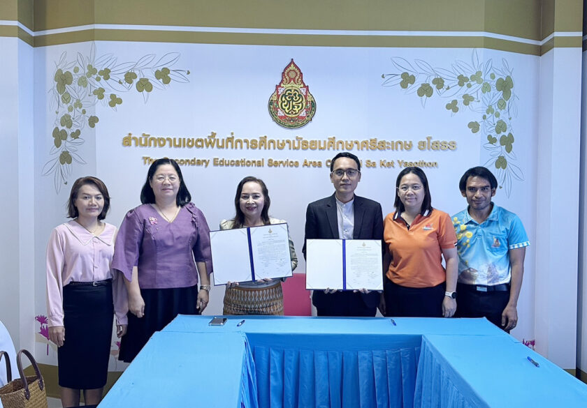 ในการนี้ นางแสงเดือน เฉื่อยฉ่ำ รองผู้อำนวยการสำนักงานเขตพื้นที่การศึกษามัธยมศึกษาศรีสะเกษ ยโสธร นางวิมลวรรณ เปี่ยมจาด ผู้อำนวยการกลุ่มนิเทศ ติดตามและประเมินผลการจัดการศึกษา นางสาวไพลินรัตน์ ทองสุ ผู้อำนวยการกลุ่มบริหารงานบุคคล และนายอภิชาต ศรีสุข นักทรัพยากรบุคคลชำนาญการ ร่วมเป็นเกียรติในการลงนามในบันทึกข้อตกลงฯ ครั้งนี้ด้วย รายละเอียดเพิ่มเติม