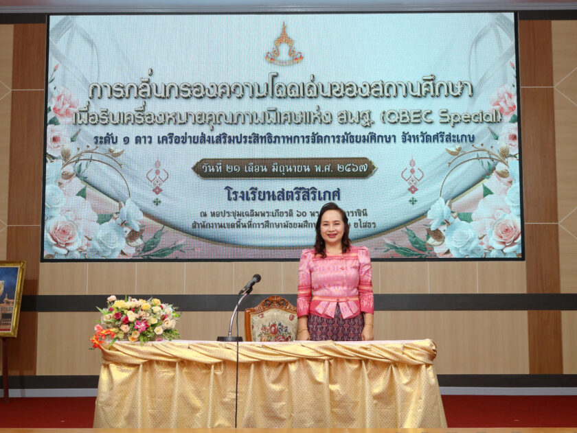 วันที่ 21 มิถุนายน 2567 นางรัตติกร ทองเนตร ผู้อำนวยการสำนักงานเขตพื้นที่การศึกษามัธยมศึกษาศรีสะเกษ ยโสธร เป็นประธาน การประชุมเชิงปฏิบัติการกลั่นกรองความโดดเด่นของสถานศึกษา เพื่อรับเครื่องหมาย “คุณภาพพิเศษ แห่ง สพฐ. (OBEC Special)” ณ หอประชุมเฉลิมพระเกียรติ 60 พรรษา มหาราชินี โรงเรียนสตรีสิริเกศ อำเภอเมืองศรีสะเกษ จังหวัดศรีสะเกษ