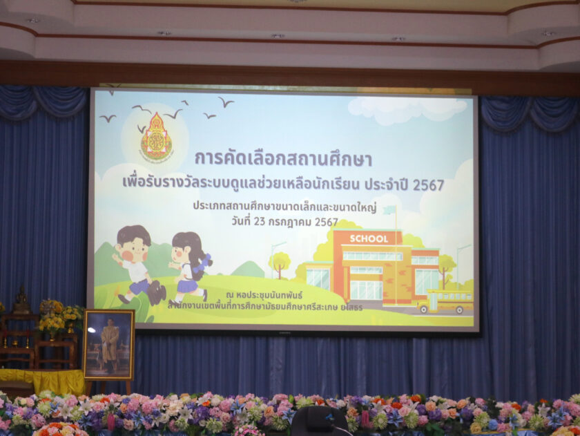 วันที่ 23 กรกฎาคม 2567 สำนักงานเขตพื้นที่การศึกษามัธยมศึกษาศรีสะเกษ ยโสธร โดยกลุ่มส่งเสริมการจัดการศึกษา ดำเนินการคัดเลือกสถานศึกษาเพื่อรับรางวัลระบบการดูแลช่วยเหลือนักเรียน ประจำปี 2567 ระดับสำนักงานเขตพื้นที่การศึกษา ประเภทสถานศึกษาขนาดเล็กและขนาดใหญ่ ณ หอประชุมนันทพันธ์ สำนักงานเขตพื้นที่การศึกษามัธยมศึกษาศรีสะเกษ ยโสธร อำเภอเมืองศรีสะเกษ จังหวัดศรีสะเกษ