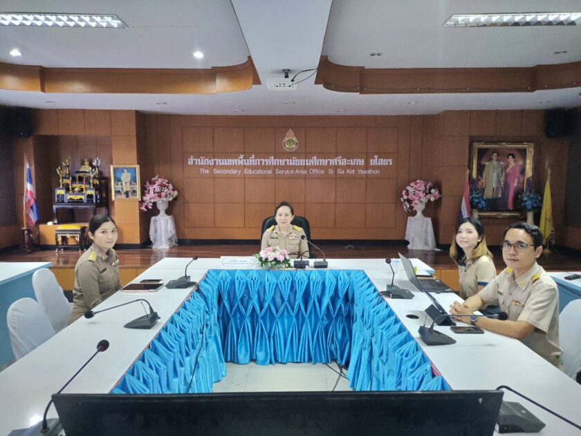 วันที่ 20 สิงหาคม 2567 นางรัตติกร ทองเนตร ผู้อำนวยการสำนักงานเขตพื้นที่การศึกษามัธยมศึกษาศรีสะเกษ ยโสธร พร้อมด้วยศึกษานิเทศก์ ร่วมประชุมขับเคลื่อนแผนการยกระดับผลการประเมินจากโปรแกรมประเมินสมรรถนะนักเรียนมาตรฐานสากล (PISA) กลุ่มผู้อำนวยการสำนักงานเขตพื้นที่การศึกษาครั้งที่ 12/2567 ผ่านระบบอิเล็กทรอนิกส์ โดยมี ดร.เกศทิพย์ ศุภวานิช รองเลขาธิการ กพฐ. เป็นประธานในการประชุมผ่านระบบ Zoom Meeting ณ ห้องประชุมชาญประดิษฐ์ สำนักงานเขตพื้นที่การศึกษามัธยมศึกษาศรีสะเกษ ยโสธร รายละเอียดเพิ่มเติม