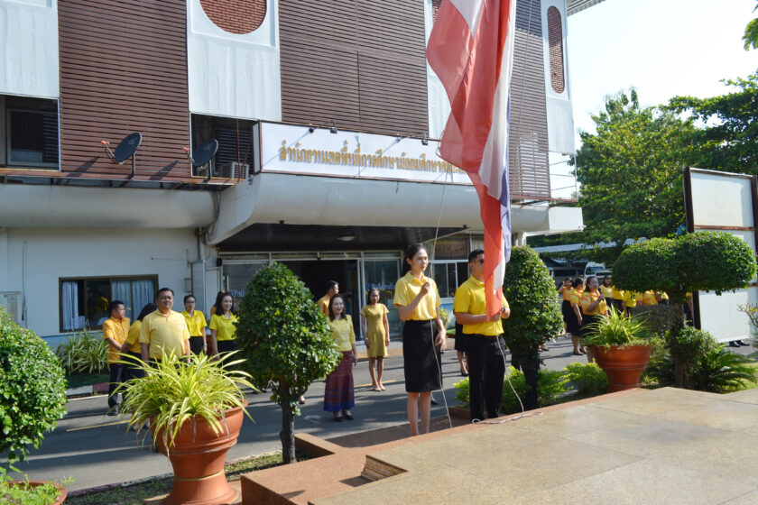 ผู้บริหาร ข้าราชการครูและบุคลากรทางการศึกษาสำนักงานเขตพื้นที่การศึกษามัธยมศึกษาศรีสะเกษ ยโสธร ร่วมกิจกรรมเขตสุจริตเข้าแถวเคารพธงชาติ