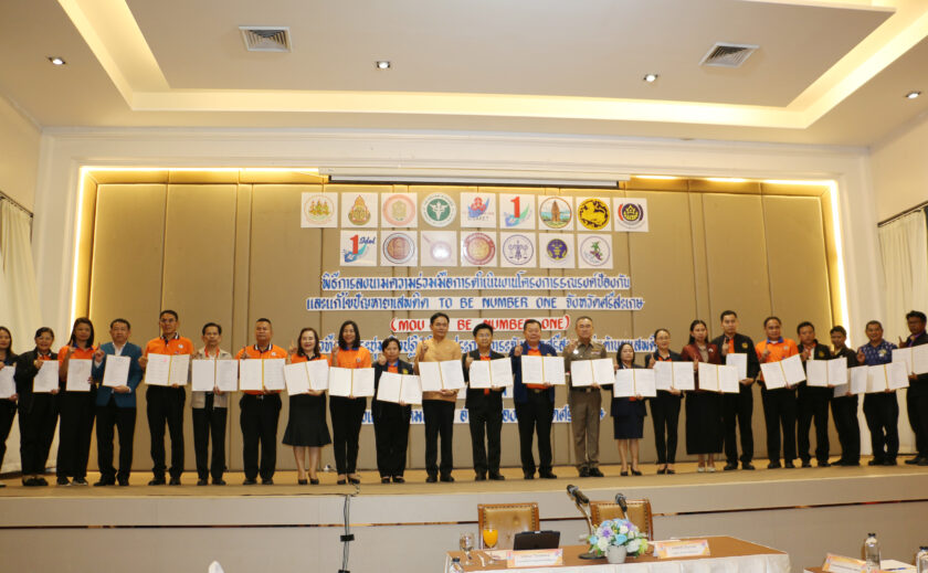 พิธีลงนามความร่วมมือการดำเนินงานโครงการรณรงค์ป้องกันและแก้ไขปัญหายาเสพติด TO BE NUMBER ONE จังหวัดศรีสะเกษ