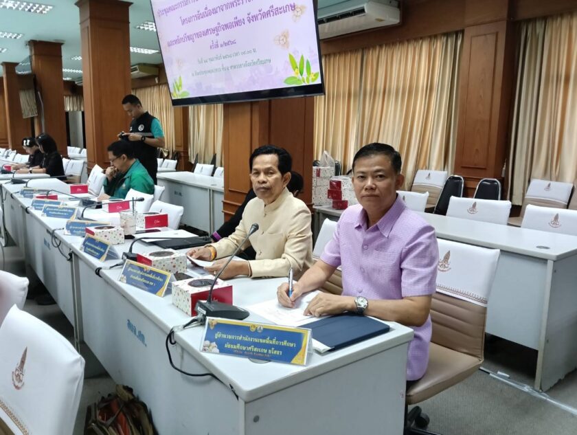 วันที่ 25 กุมภาพันธ์ 2568 นางรัตติกร ทองเนตร ผู้อำนวยการสำนักงานเขตพื้นที่การศึกษามัธยมศึกษาศรีสะเกษ ยโสธร มอบหมายให้ นายปรัชญา ชำนาญนาค รองผู้อำนวยการสำนักงานเขตพื้นที่การศึกษาประถมศึกษาฉะเชิงเทรา เขต 2 ปฏิบัติราชการตำแหน่งรองผู้อำนวยการสำนักงานเขตพื้นที่การศึกษามัธยมศึกษาศรีสะเกษ ยโสธร เข้าร่วมการประชุมคณะกรรมการประสานงานการขับเคลื่อนและขยายผลโครงการอันเนื่องมาจากพระราชดำริ และหลักปรัชญาเศษฐกิจพอเพียง จังหวัดศรีสะเกษ ครั้งที่ 1/2568 โดยมี นายธาตรี สิริรุ่งวนิช รองผู้ว่าราชการจังหวัดศรีสะเกษ เป็นประธาน ณ ห้องประชุมศรีพฤทเธศวร ชั้น 5 ศาลากลางจังหวัดศรีสะเกษ อำเภอเมืองศรีสะเกษ จังหวัดศรีสะเกษ รายละเอียดเพิ่มเติม