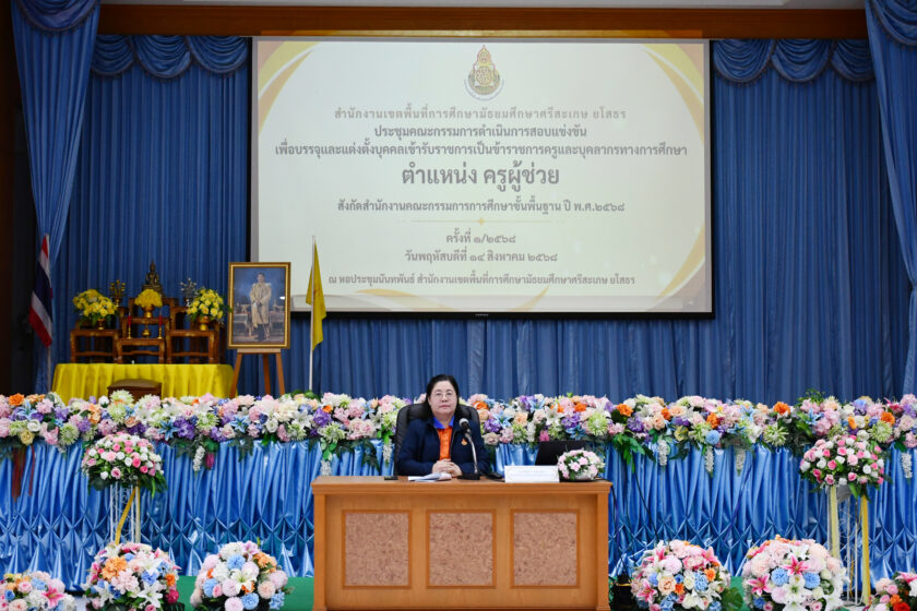 วันที่ 14 สิงหาคม 2568 นางรัตติกร ทองเนตร ผู้อำนวยการสำนักงานเขตพื้นที่การศึกษามัธยมศึกษาศรีสะเกษ ยโสธร มอบหมายให้ นางแสงเดือน เฉื่อยฉ่ำ รองผู้อำนวยการสำนักงานเขตพื้นที่การศึกษามัธยมศึกษาศรีสะเกษ ยโสธร เป็นประธาน การประชุมคณะกรรมการดำเนินการสอบแข่งขันเพื่อบรรจุและแต่งตั้งบุคคลเข้ารับราชการเป็นข้าราชการครู และบุคลากรทางการศึกษา ตำแหน่งครูผู้ช่วย สังกัดสำนักงานคณะกรรมการการศึกษาขั้นพื้นฐาน ปี พ.ศ. 2568 เพื่อชี้แจงเกี่ยวกับการดำเนินงานของคณะกรรมการกำกับการสอบแข่งขันเพื่อบรรจุและแต่งตั้งบุคคลเข้ารับราชการเป็นข้าราชการครูและบุคลากรทางการศึกษา ตำแหน่งครูผู้ช่วยฯ ณ หอประชุมนันทพันธ์ สำนักงานเขตพื้นที่การศึกษามัธยมศึกษาศรีสะเกษ ยโสธร อำเภอเมืองศรีสะเกษ จังหวัดศรีสะเกษ