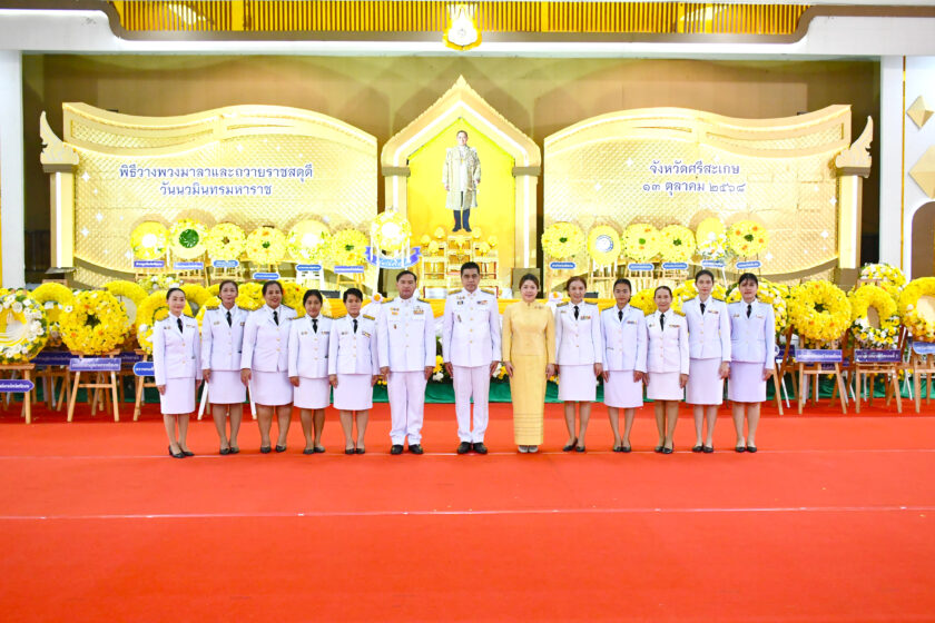 จากนั้น รองผู้อำนวยการสำนักงานเขตพื้นที่การศึกษามัธยมศึกษาศรีสะเกษ ยโสธร และคณะ ร่วมพิธีวางพวงมาลาและถวายราชสดุดี เนื่องในวันนวมินทรมหาราช 13 ตุลาคม 2568 ณ อาคารเฉลิมพระเกียรติฉลองสิริราชสมบัติ ครบ 60 ปี อำเภอเมืองศรีสะเกษ จังหวัดศรีสะเกษ รายละเอียดเพิ่มเติม