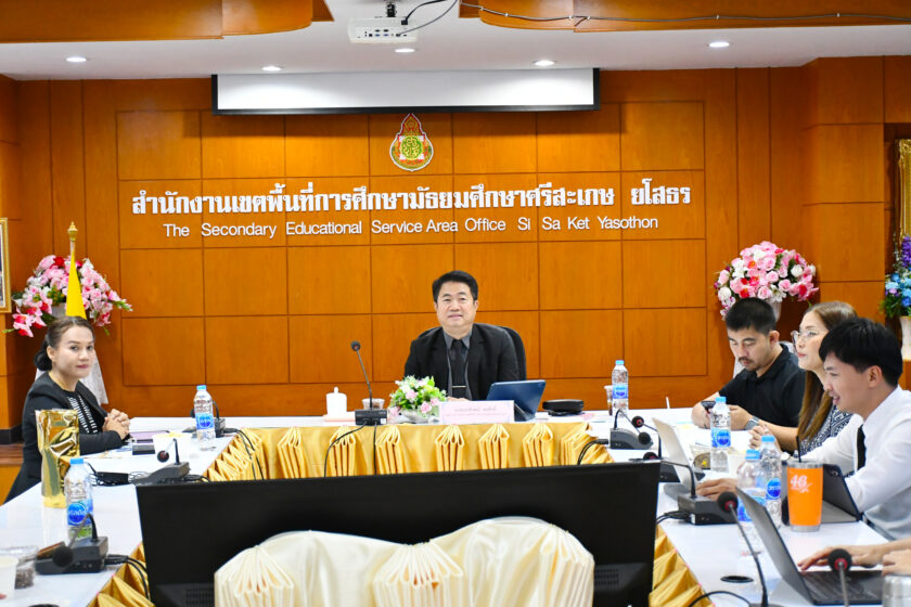 วันที่ 30 ตุลาคม 2568 นางรัตติกร ทองเนตร ผู้อำนวยการสำนักงานเขตพื้นที่การศึกษามัธยมศึกษาศรีสะเกษ ยโสธร มอบหมายให้ นายเอกลักษณ์ พลศักดิ์ รองผู้อำนวยการสำนักงานเขตพื้นที่การศึกษามัธยมศึกษาศรีสะเกษ ยโสธร พร้อมคณะศึกษานิเทศก์ เข้าร่วมการประชุม Kickoff Meeting : มิติใหม่การนิเทศการศึกษาสู่การพัฒนาคุณภาพผู้เรียนอย่างยั่งยืนตามนโยบาย “เรียนดี มีคุณธรรม” ปีงบประมาณ พ.ศ. 2569 ผ่านระบบออนไลน์ ณ ห้องประชุมชาญประดิษฐ์ สำนักงานเขตพื้นที่การศึกษามัธยมศึกษาศรีสะเกษ ยโสธร อำเภอเมืองศรีสะเกษ จังหวัดศรีสะเกษ