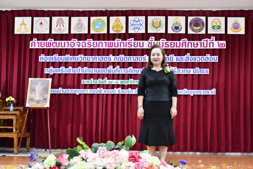 วันที่ 7 พฤศจิกายน 2568 นางรัตติกร ทองเนตร ผู้อำนวยการสำนักงานเขตพื้นที่การศึกษามัธยมศึกษาศรีสะเกษ ยโสธร เป็นประธาน พิธีเปิดกิจกรรมค่ายพัฒนาอัจฉริยภาพนักเรียนโครงการห้องเรียนพิเศษวิทยาศาสตร์ คณิตศาสตร์ เทคโนโลยีและสิ่งแวดล้อม ชั้นมัธยมศึกษาปีที่ 2 ณ โรงแรมบ้านสวนคุณตา กอล์ฟ แอนด์ รีสอร์ท จังหวัดอุบลราชธานี