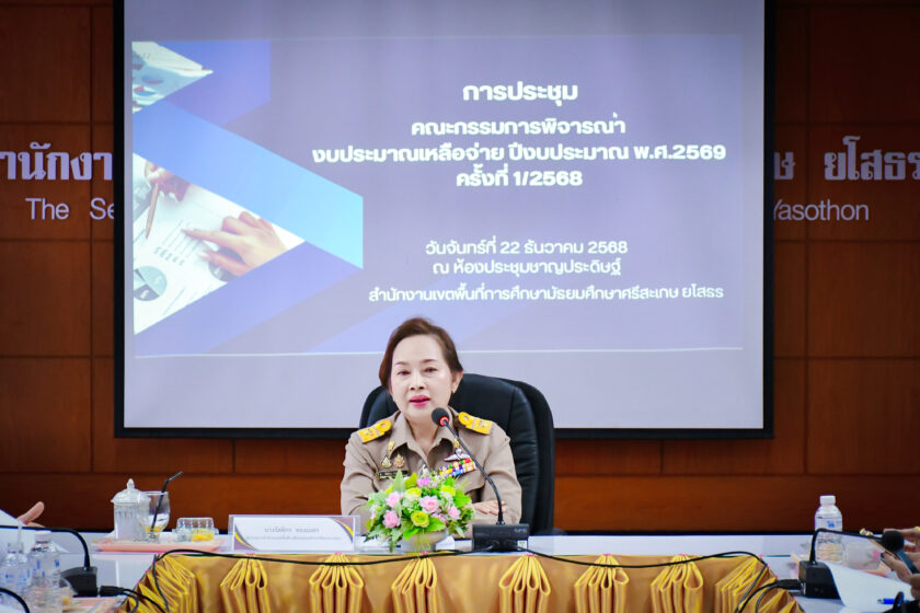 วันที่ 22 ธันวาคม 2568 นางรัตติกร ทองเนตร ผู้อำนวยการสำนักงานเขตพื้นที่การศึกษามัธยมศึกษาศรีสะเกษ ยโสธร เป็นประธาน การประชุมคณะกรรมการพิจารณางบประมาณเหลือจ่าย ประจำปีงบประมาณ พ.ศ. 2569 ครั้งที่ 1/2569 ณ ห้องประชุมชาญประดิษฐ์ สำนักงานเขตพื้นที่การศึกษามัธยมศึกษาศรีสะเกษ ยโสธร อำเภอเมืองศรีสะเกษ จังหวัดศรีสะเกษ รายละเอียดเพิ่มเติม