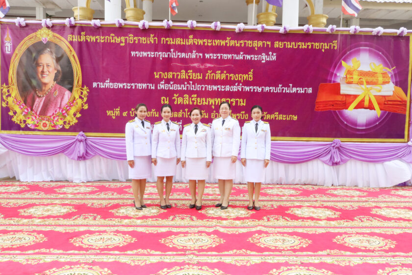 วันที่ 6 พฤศจิกายน 2565 สมเด็จพระกนิษฐาธิราชเจ้า กรมสมเด็จพระเทพรัตนราชสุดาฯ สยามบรมราชกุมารี ทรงพระกรุณาโปรดเกล้าฯ ให้ นางสาวสิเรียม ภักดีดำรงฤทธิ์ เป็นประธานพิธีนำผ้ากฐินพระราชทาน สมเด็จพระกนิษฐาธิราชเจ้า กรมสมเด็จพระเทพรัตนราชสุดาฯ สยามบรมราชกุมารี ทอดถวายผ้าพระกฐินพระราชทาน ณ วัดสิเรียมพุทธาราม ตำบลสำโรงพลัน อำเภอไพรบึง จังหวัดศรีสะเกษ