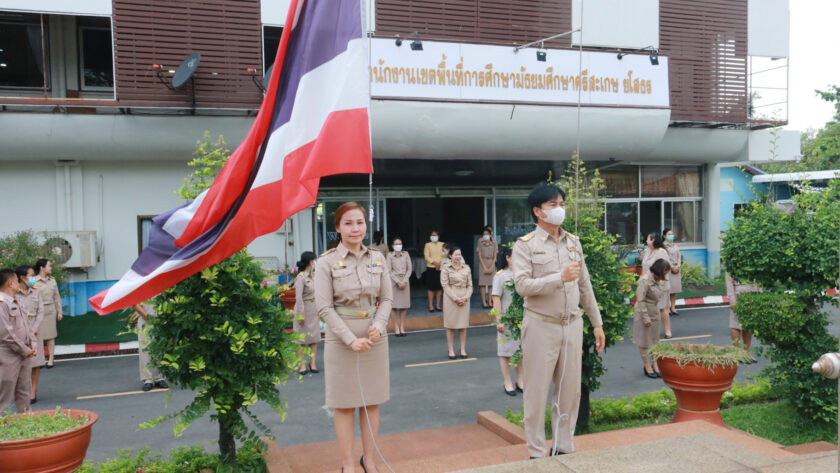 วันที่ 24 เมษายน 2566 ดร.รัตติกร ทองเนตร ผู้อำนวยการสำนักงานเขตพื้นที่การศึกษามัธยมศึกษาศรีสะเกษ ยโสธร มอบหมายให้ นางแสงเดือน เฉื่อยฉ่ำ รองผู้อำนวยการสำนักงานเขตพื้นที่การศึกษามัธยมศึกษาศรีสะเกษ ยโสธร พร้อมด้วย ข้าราชการครูและบุคลากรทางการศึกษาสำนักงานเขตพื้นที่การศึกษามัธยมศึกษาศรีสะเกษ ยโสธร ร่วมกิจกรรมเขตสุจริตเข้าแถวเคารพธงชาติ สวดมนต์ไหว้พระ กล่าวคำปฏิญญาเขตสุจริต โดยพร้อมเพรียงกัน ณ สำนักงานเขตพื้นที่การศึกษามัธยมศึกษาศรีสะเกษ ยโสธร อำเภอเมือง จังหวัดศรีสะเกษ รายละเอียดเพิ่มเติม