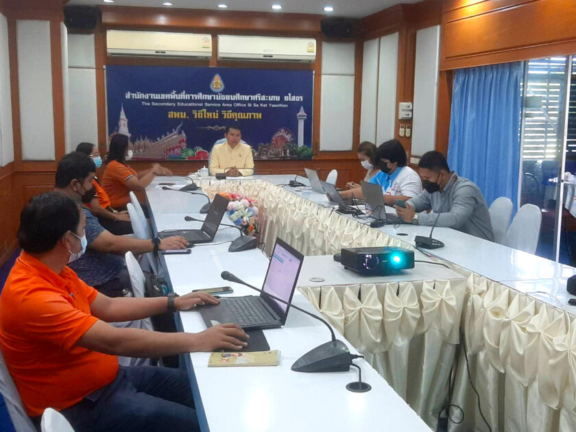 วันที่ 14 มิถุนายน 2566 ดร.รัตติกร ทองเนตร ผู้อำนวยการสำนักงานเขตพื้นที่การศึกษามัธยมศึกษาศรีสะเกษ ยโสธร มอบหมายให้ นายชิราวุฒิ สองสี รองผู้อำนวยการสำนักงานเขตพื้นที่การศึกษามัธยมศึกษาศรีสะเกษ ยโสธร เป็นประธานการประชุมปฏิบัติการรายงาน ตรวจสอบ และจัดเก็บแบบรายงานผู้สำเร็จการศึกษาตามหลักสูตรแกนกลางการศึกษาขั้นพื้นฐาน (ปพ.3) ผ่านระบบ ปพ.3 ออนไลน์ ระหว่างวันที่ 14-16 มิถุนายน 2566 โดยมีโรงเรียนกลุ่มเป้าหมายเข้าร่วม จำนวน 37 โรงเรียน ณ ห้องประชุมศรีโสธร ชั้น 3 สำนักงานเขตพื้นที่การศึกษามัธยมศึกษาศรีสะเกษ ยโสธร อำเภอเมือง จังหวัดศรีสะเกษ รายละเอียดเพิ่มเติม